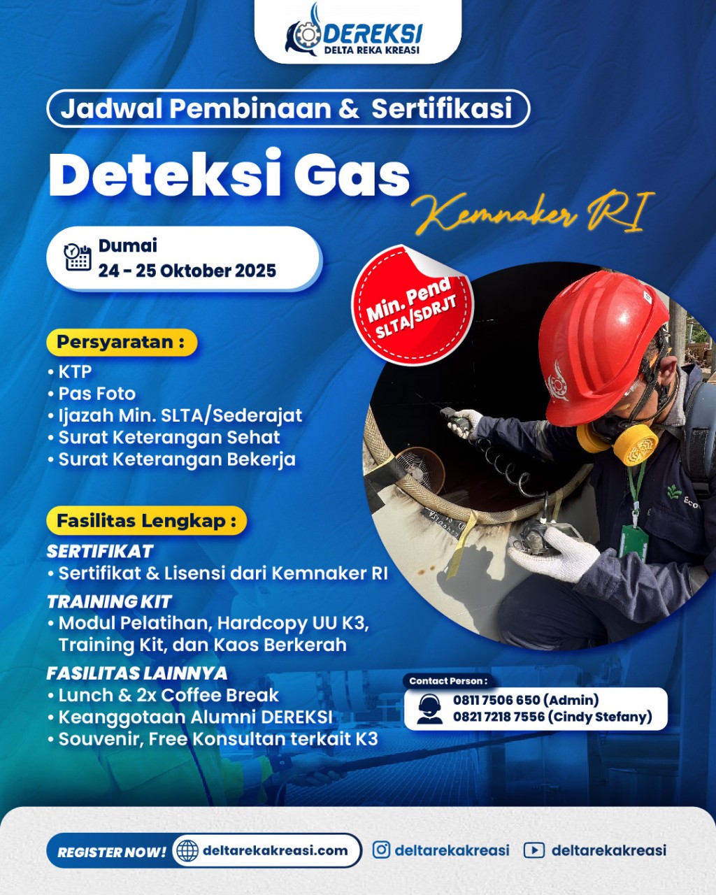Ikuti Sertifikasi Ahli Keselamatan dan Kesehatan Kerja (K3) dan raih kesempatan karir yang lebih baik sebagai Ahli K3. Pelatihan dan Sertifikasi dibuka sesuai batch dan kuota yang tersedia.