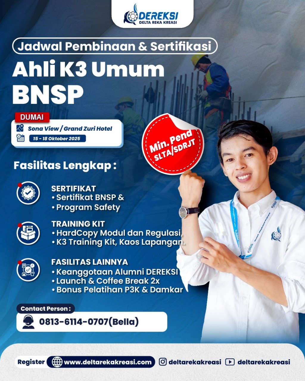 BNSP Ahli K3 Umum 15 Oktober 2025 - 18 Oktober 2025 Dumai